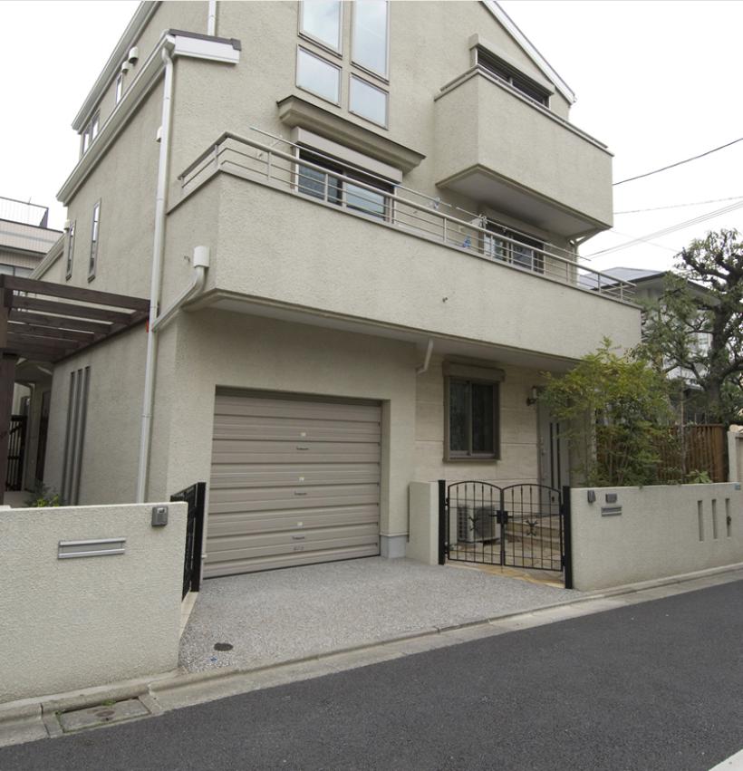 Ngôi nhà ba tầng dành cho hai thế hệ được thiết kế với tông màu xám bạc làm chủ đạo. Garage tích hợp sẵn trong nhà được lắp đặt cửa cuốn Rollbard bằng thép, cùng với cổng dẫn vào cửa chính của từng bên gia đình được bố trí ở hai bên garage, là một ý tưởng xuất sắc giúp nâng cao tính độc lập giữa gia đình cha mẹ và gia đình con cái.