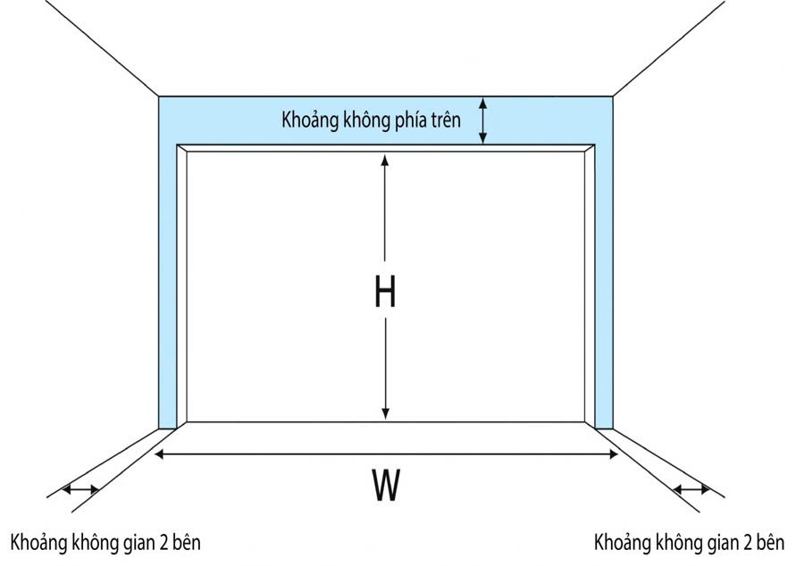 ● Không đặt các chướng ngại vật như đèn trong không gian lưu trữ cửa hoặc không gian vận hành.